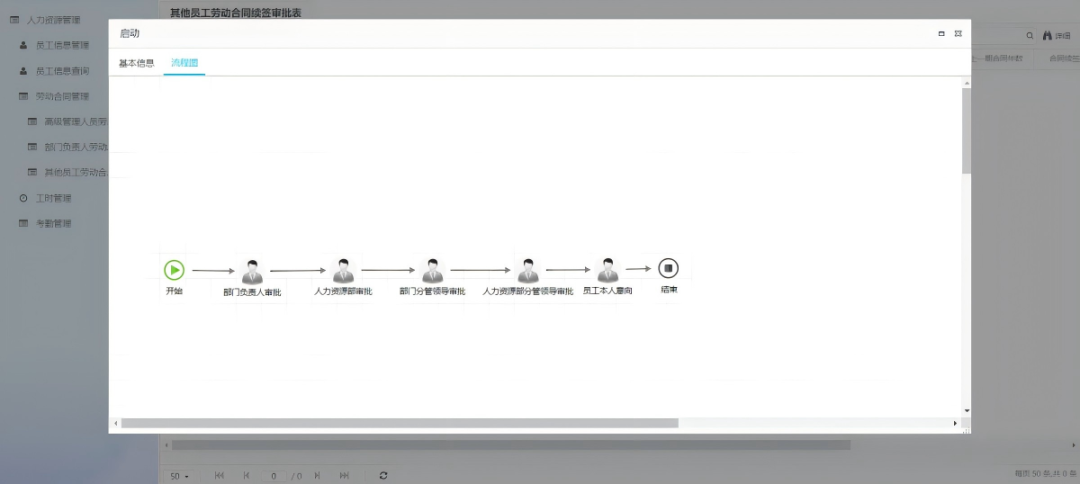 合规审查:普通员工劳动合同续签:开始→部门负责人审批→人力资源部审批→部门分管领导审批→人力资源部分管领导审批→员工本人意向→结束