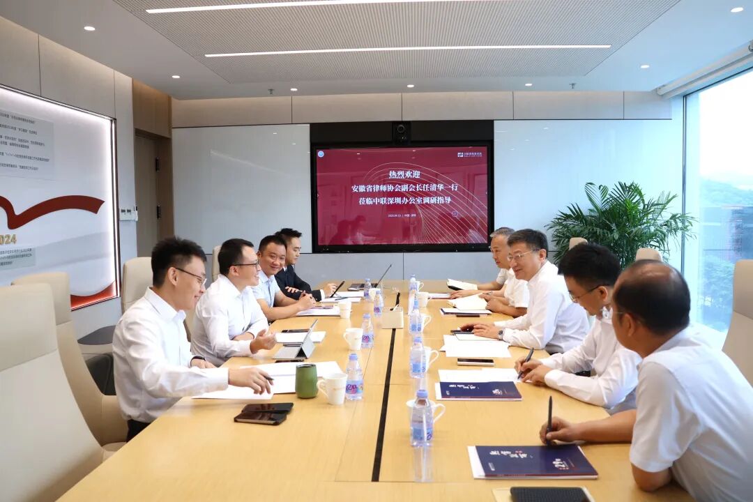 2025年9月19日上午,安徽省律师协会副会长任清华率行政法专业委员会考察调研团一行莅临中联深圳办公室,深圳市律师协会党委政府法律顾问委员会委员闵继风律师受邀陪同到访。