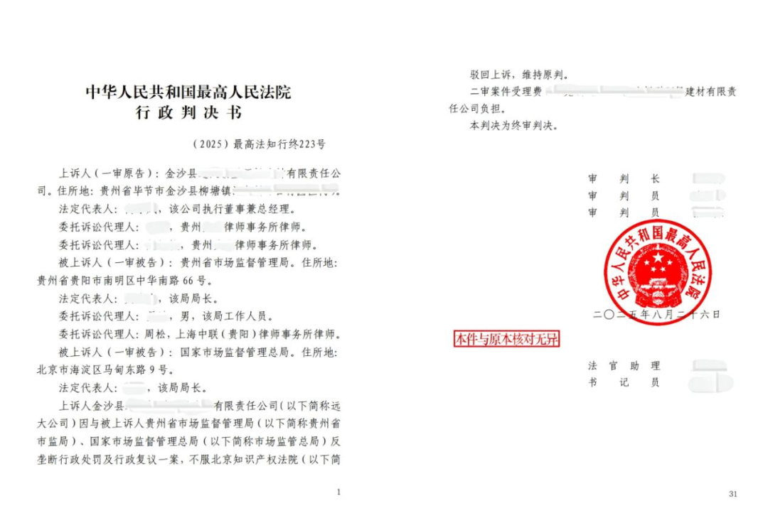 近日,上海中联(贵阳)律师事务所副主任周松律师代理贵州省市场监督管理局应诉的反垄断行政诉讼案件,历经北京知识产权法院一审、最高人民法院二审,终审判决维持了贵州省市场监管局的行政处罚决定。此案系周松律师代理该局应诉并胜诉的第二起反垄断行政诉讼系列案件。