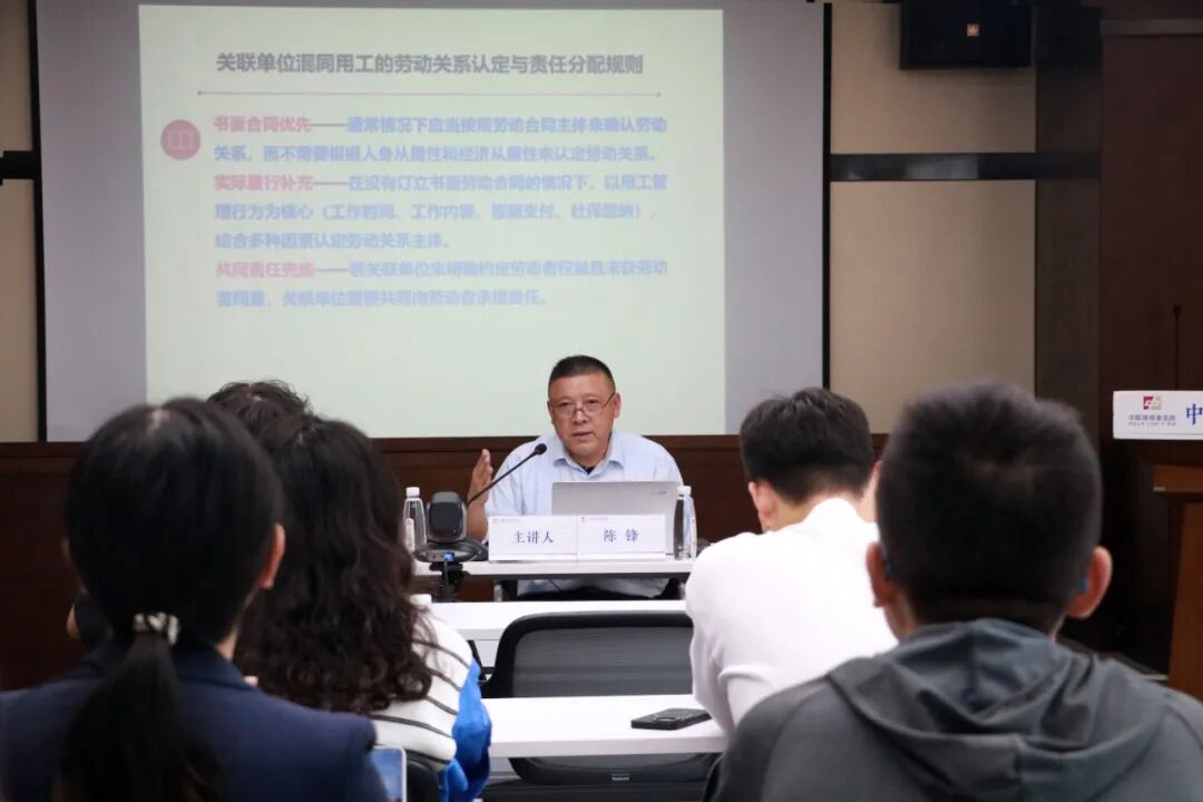 讲座中,陈锋院长围绕《劳动争议司法解释(二)》对企业用工的影响,与现场律师讨论了违法转包、混同用工、竞业限制、双倍工资计算、违法解除劳动合同等问题。谈到违法转包、挂靠问题时,他结合实际案例,说明了“用工主体责任”的边界:具备合法经营资格的承包人将业务转包给无资质的组织或个人,或无资质主体挂靠经营时,承包人、被挂靠单位需承担劳动报酬支付及工伤保险待遇责任。对于关联企业 “混同用工” 现象,他和现场律师展开了深入探讨,明确了劳动合同优先的原则,也对竞业限制适用范围进行了详细分析。