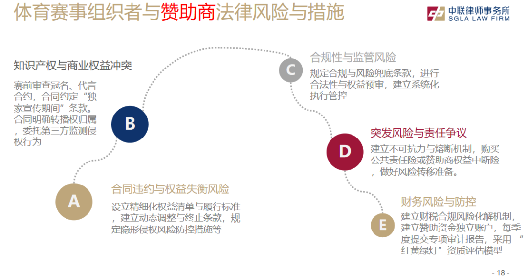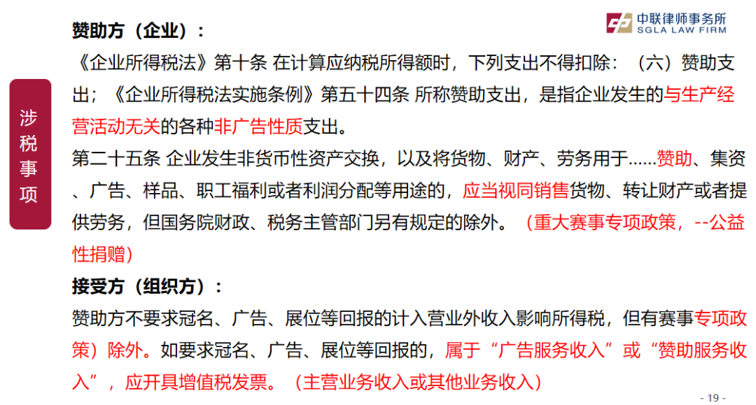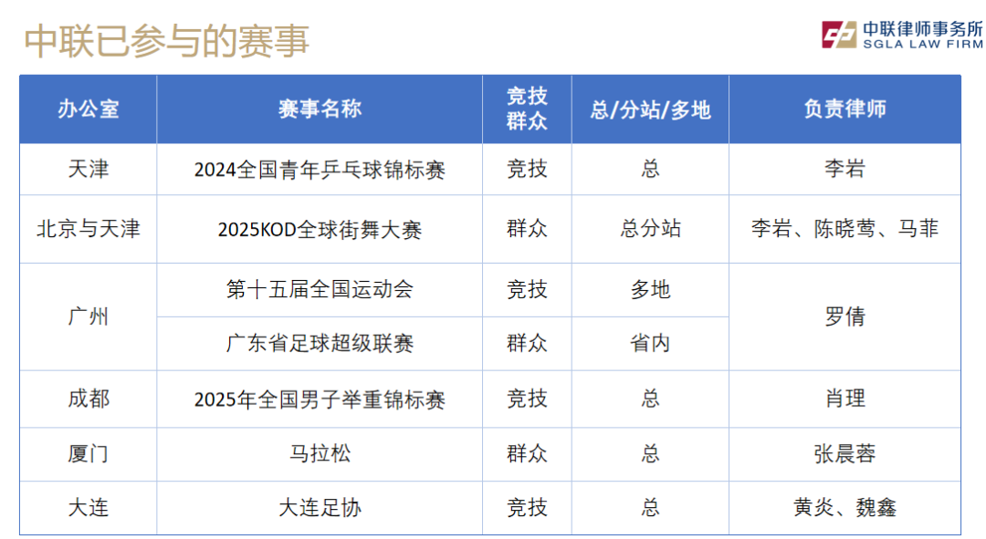 而且在提供体育赛事法律服务过程中,同时考虑涉税因素,为赛事组织方厘清赞助收入的性质(如广告服务或捐赠),并为运动员、赞助企业等各方提供涉及个人所得税、企业所得税及增值税等的专业规划,确保赛事在法律与税务双重维度上合规、高效运行。