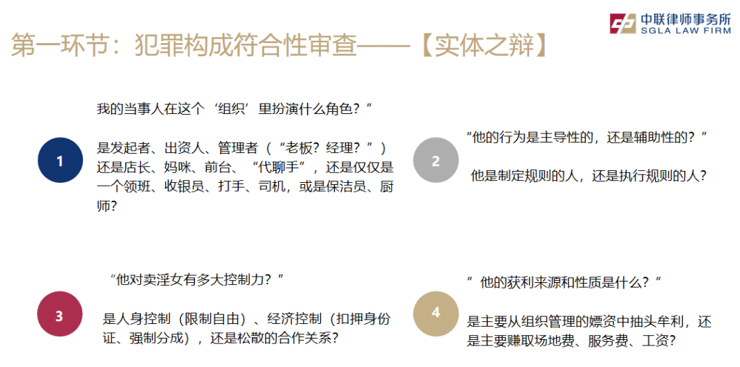 他特别提到,协助组织卖淫罪虽系帮助行为正犯化,但并非所有参与行为均一概认定为组织卖淫,律师应依据事实和证据力争实现罪名转化或量刑减轻。