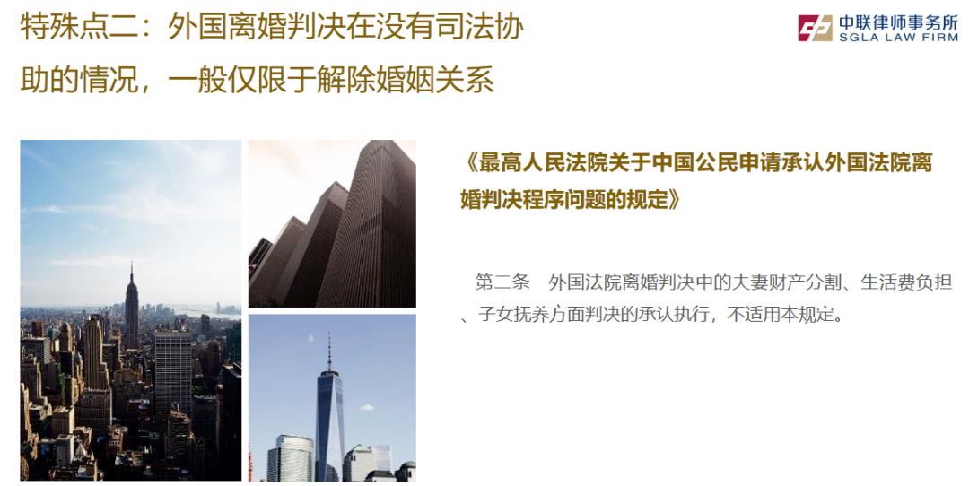 在分享中,王律师通过实务争议系统梳理了离婚判决的规则与例外,同时梳理了港澳台判决的规则差异与实操指引。王律师指出离婚判决的特殊性,即使无条约或互惠关系,仍可申请承认。关于港澳台判决,王律师以香港离婚判决的范围扩大为例,介绍其特殊安排。除离婚判决外,赡养费支付、财产分配等附随命令亦可申请承认。王律师还结合北京地区实践讲解涉外判决承认需向申请人住所地或财产所在地中级法院提交申请书、公证认证文件等材料,提示提前与法院沟通送达、翻译等细节,以规避程序风险。