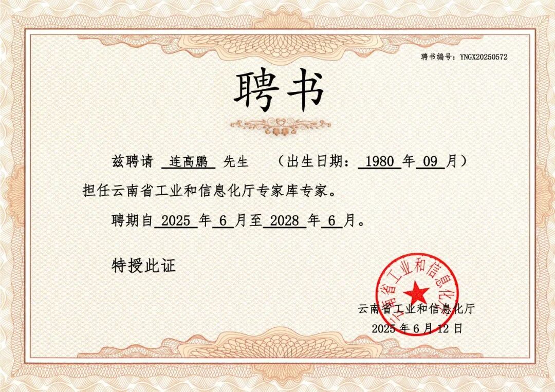 为充分发挥专家在工业和信息化领域管理决策中的咨询参谋作用,为科学决策提供智力支撑,依据《云南省工业和信息化厅专家库管理办法》,经公开征集、个人申请、所在单位核实推荐、材料审核、审验入库及部门网站公示等程序,云南省工业和信息化厅专家库正式确立。该专家库涵盖综合类、行业类(含材料、装备、食品、医药、消费品、信产、化工)、经济类、法律类、重点专项工作 5 个大类,共纳入 751 名专家。其中,中联昆明办公室管理合伙人连高鹏、徐梅两位律师被聘任为法律类专家,聘期 3 年。