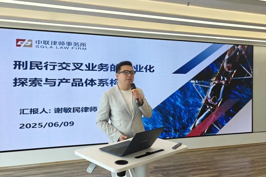 2025年6月9日上午9点,中联北京办公室第二十六期周一晨会在鼎好大厦21层举行。中联北京高级合伙人、首席运营联络官、刑民行交叉部主任谢敏民律师围绕“刑民行交叉业务的专业化探索与产品体系构建”主题做了分享。北京办公室和中联各地办公室同仁线下线上一起参与晨会分享。北京办公室刘紫儒律师主持了此次晨会。