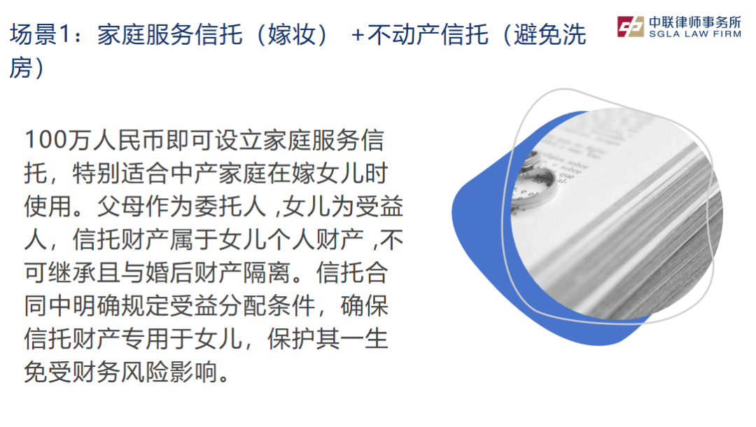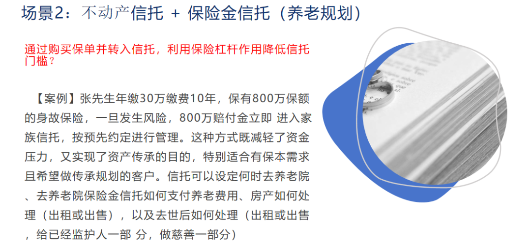 侯律师认为,不动产信托业务为家事律师带来三大机遇:一是可通过“家庭服务信托+不动产信托”防范婚姻财产风险;二是可通过“不动产信托 + 保险金信托”制定养老规划;三是利用“家族信托+祖宅和商业不动产信托”实现商业不动产与祖宅的跨代传承。