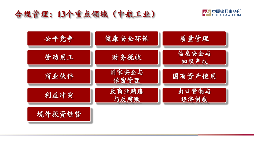 合规管理是响应《中央企业合规管理办法》等政策要求的关键举措,仲涛律师首先借助西门子公司的典型案例,揭示了合规管理的核心概念及其战略价值。其次,结合国有企业监管规定的演变历程,讲解了企业风险管理模式的演变。最后,深入剖析了中航工业系统合规管理中的重点领域以及合规管理体系的建设步骤,为企业构建科学高效的合规机制提供了前瞻性的思路。