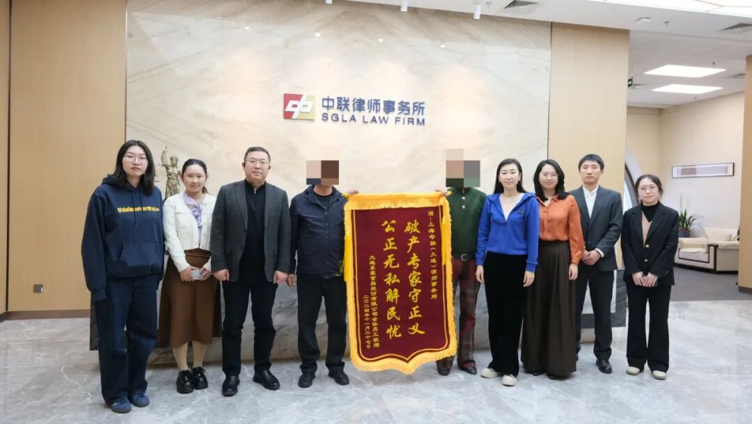 (东霖食品职工代表代表全体欠薪职工向管理人赠予锦旗)