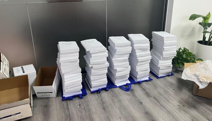 律师的工作战场,虽不见硝烟弥漫,却同样需要艰苦奋斗的执着坚守。在面对复杂棘手的困难案件时,尤其需要凭借坚韧不拔的执着精神突破重重困境,最终实现柳暗花明。律师并不只是很多人想象中的高精尖的脑力工作者,更是吃苦耐劳的“老黄牛”。下图为我们曾经办理一起商事仲裁时准备的证据材料,五份证据共8000多页,该案历时四年多,最终获得胜诉结果。我们深切明白,每一次严谨细致的论证、每一次坚定无畏的辩护,皆是为了当事人的利益得到最大化的维护,皆是在为法治中国大厦的建设添砖加瓦,贡献力量。