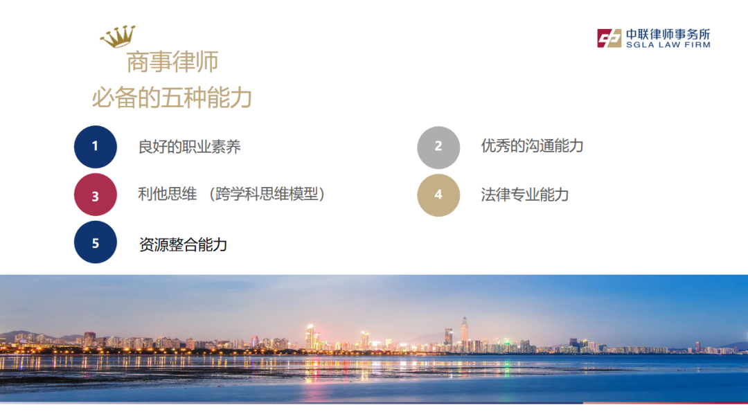 史律师指出,商事律师应具备五种能力,一是良好的职业素养。时间管理、服务意识与持续学习是律师职业发展的基石。二是沟通能力。商事客户需要的不仅是法律答案,更是解决方案,需要简单易懂的语言与客户沟通,避免法律术语堆砌。三是利他思维。商事客户帮助客户实现商业目标,而非单纯追求律师费。四是专业能力。提供多维度的解决方案,而不仅是法律建议,从执行到反馈,确保问题彻底解决。五是资源整合能力。被看见是商事律师的第一步,善用平台资源,与律所共同成长,为客户提供更全面的支持。