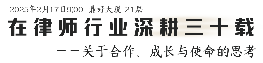 第五,向光而行。这是法律人的时代使命。律师不仅追求个人利益,更肩负维护社会正义、促进法治文明的职责使命。过往的三十年是中国经济社会大发展时期,新旧规则交替频繁,为律师行业带来了前所未有的机遇,也伴随着严峻的挑战。作为一名执业律师应当顺势而为,勇敢探索,砥砺前行,始终站在正义和光明的一边。