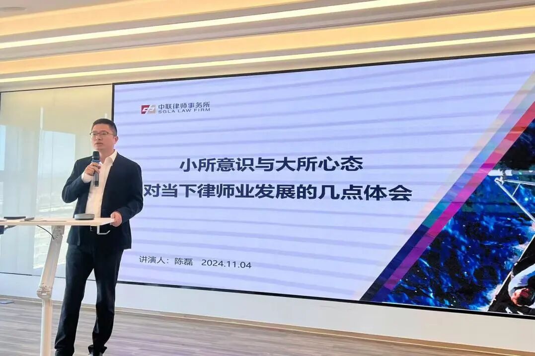 2024年11月4日上午9:00,中联北京办公室第四期周一晨会在鼎好大厦21层举行。中联北京办公室执行主任陈磊就《小所意识与大所心态:对当下律师业发展的几点体会》做了分享。