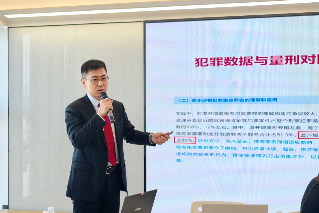中联北京办公室财务人员杨洁分享的主题是“一张发票的‘自白’:我是如何被开出、流转,并卷入刑事案件的”。杨洁从发票的开具出发,结合增值税的税制原理与“链条税”特征,通过典型案例直观呈现了合法经营场景下发票的流转机制与税负归属逻辑。她深入剖析了虚开发票行为中开票方与受票方的多重动机,并梳理了由税务行政调查升级为刑事案件,以及因上下游企业案发而被牵连的常见路径,为与会人员理解虚开行为的法律责任奠定了扎实的实务基础。