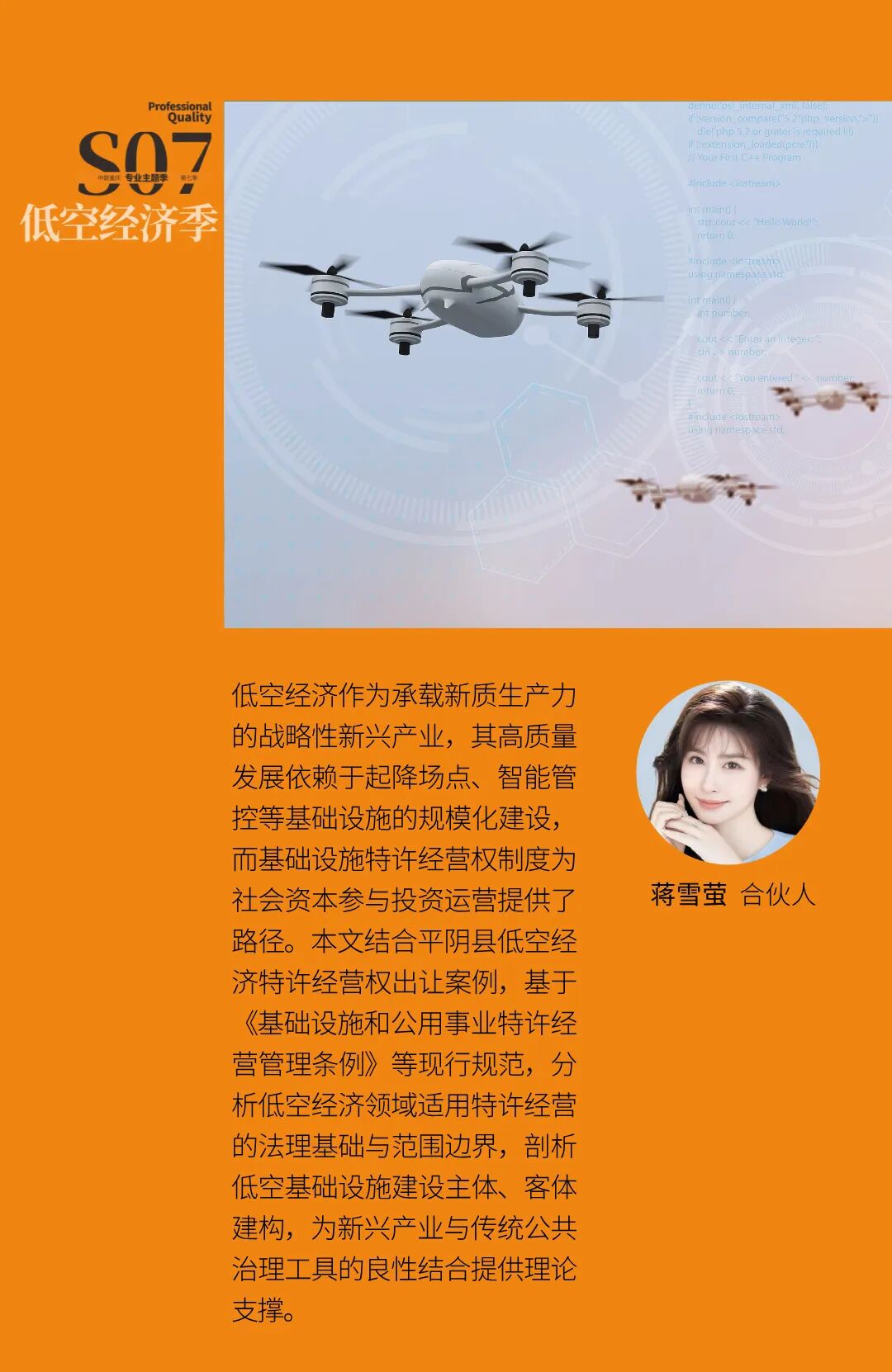如通过将低空起降点等基础设施建设、运营纳入特许经营范畴,政府通过法定程序将特定区域基础设施的运营权授予投资主体,为社会资本提供长期保障,使其既能通过起降服务、场地租赁等基础业务收回前期投资,还能依托物流配套、数据服务等增值业态获得持续收益。这一良性机制的建立,既能破解基础设施建设的资金困境,更能吸引更多资本参与低空经济生态构建,最终推动整个产业从政策驱动向市场驱动转型,实现高质量发展。