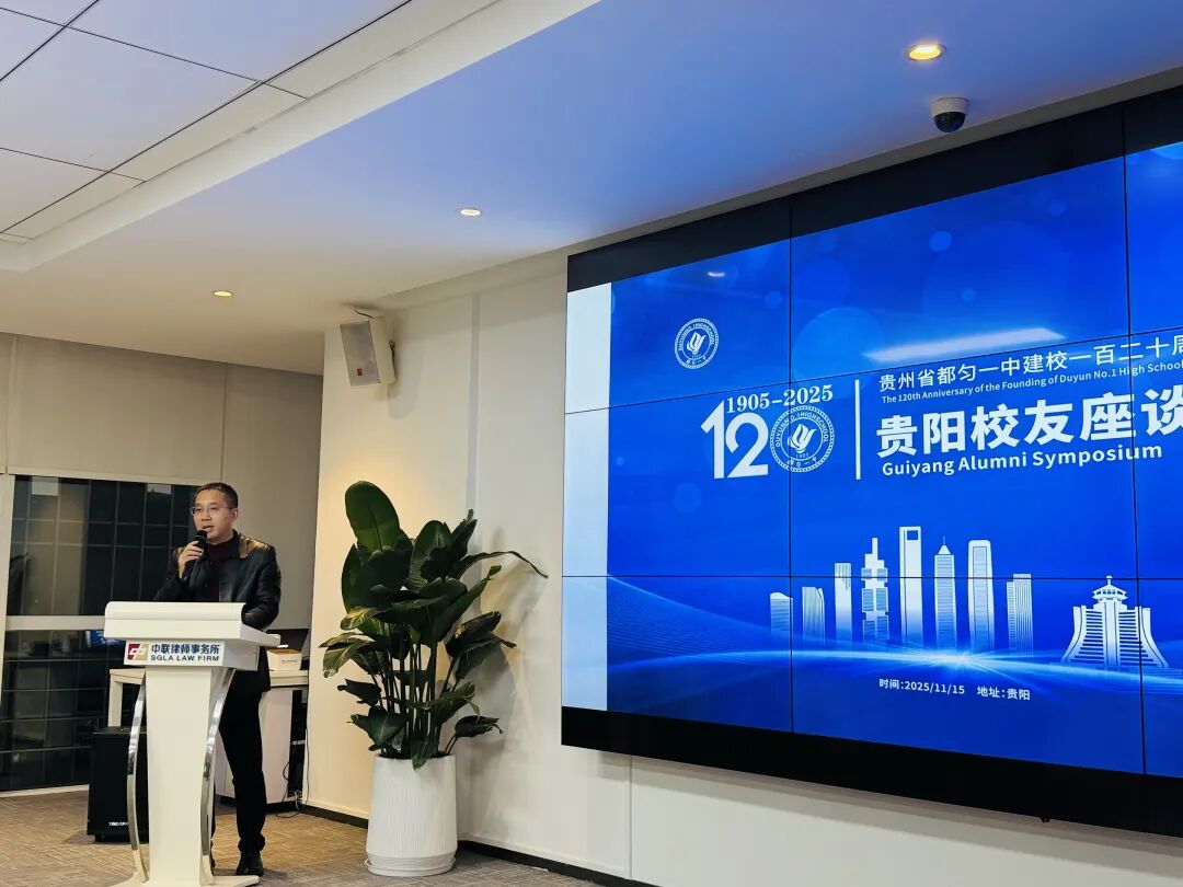 2025年11月15日下午,贵州省都匀一中建校120周年贵阳校友座谈会在上海中联(贵阳)律师事务所隆重举行。来自贵阳各界的四十余位校友代表与都匀一中党委副书记、校长金大城,党委委员、副校长龙家林,副校长杨明乾等校领导欢聚一堂,共叙母校情谊,共话发展新篇。