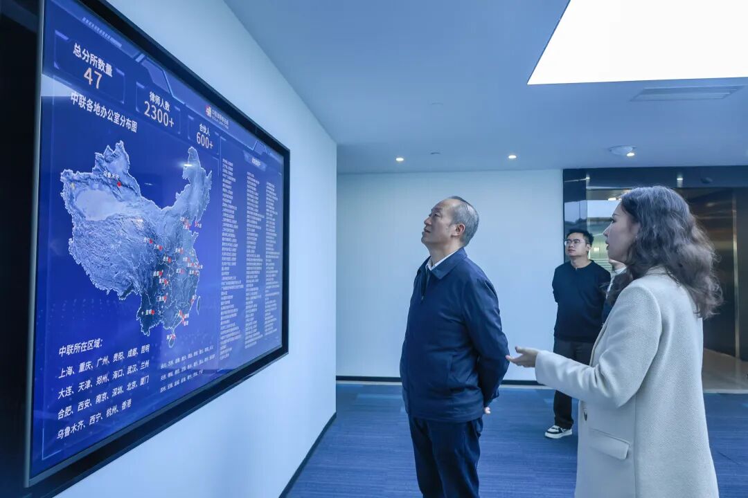 会前,在中联贵阳律所高级合伙人龚良晴与主办律师石中晟的陪同下,学校领导与校友共同参观了律所13-14层的办公区、党建活动室、文化墙及荣誉墙等区域。