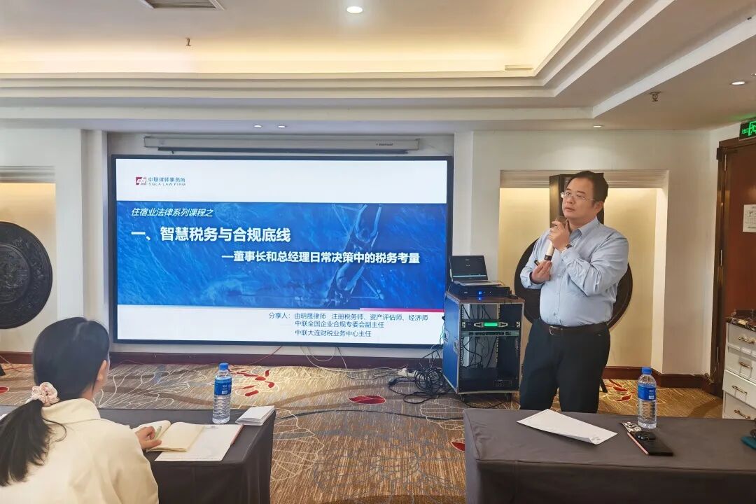 11月21日下午,由明晟律师受大连市住宿业协会的邀请,为协会会员单位做“智慧税务与合规底线——董事长和总经理日常决策中的税务考量”专题培训。本次培训以智慧税务背景下酒店住宿业的税务风险为切入点,紧扣住宿业税务合规核心痛点,吸引25家会员企业的40余位董事长、总经理及财务负责人参加。