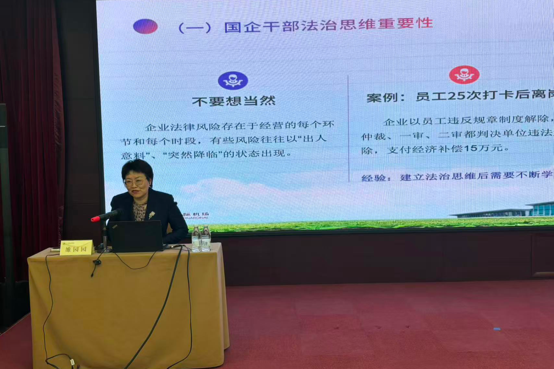 为进一步增强国有企业干部的法治素养与风险防控能力,11月6日下午,大连国际机场集团邀请雒园园律师开展了《国企干部法治思维与法律风险防范》专题培训讲座。