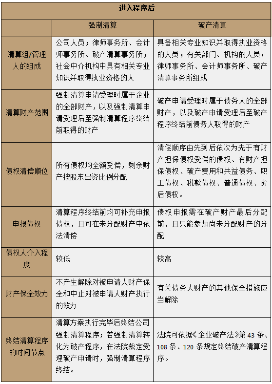 其中,强制清算程序与破产清算程序是最为关键的两条救济路径。尽管二者均以清理债权债务、终结企业主体资格为目标,但在制度定位、适用条件、程序规则及法律效果等方面存在本质差异,笔者仅以此文作简要梳理。