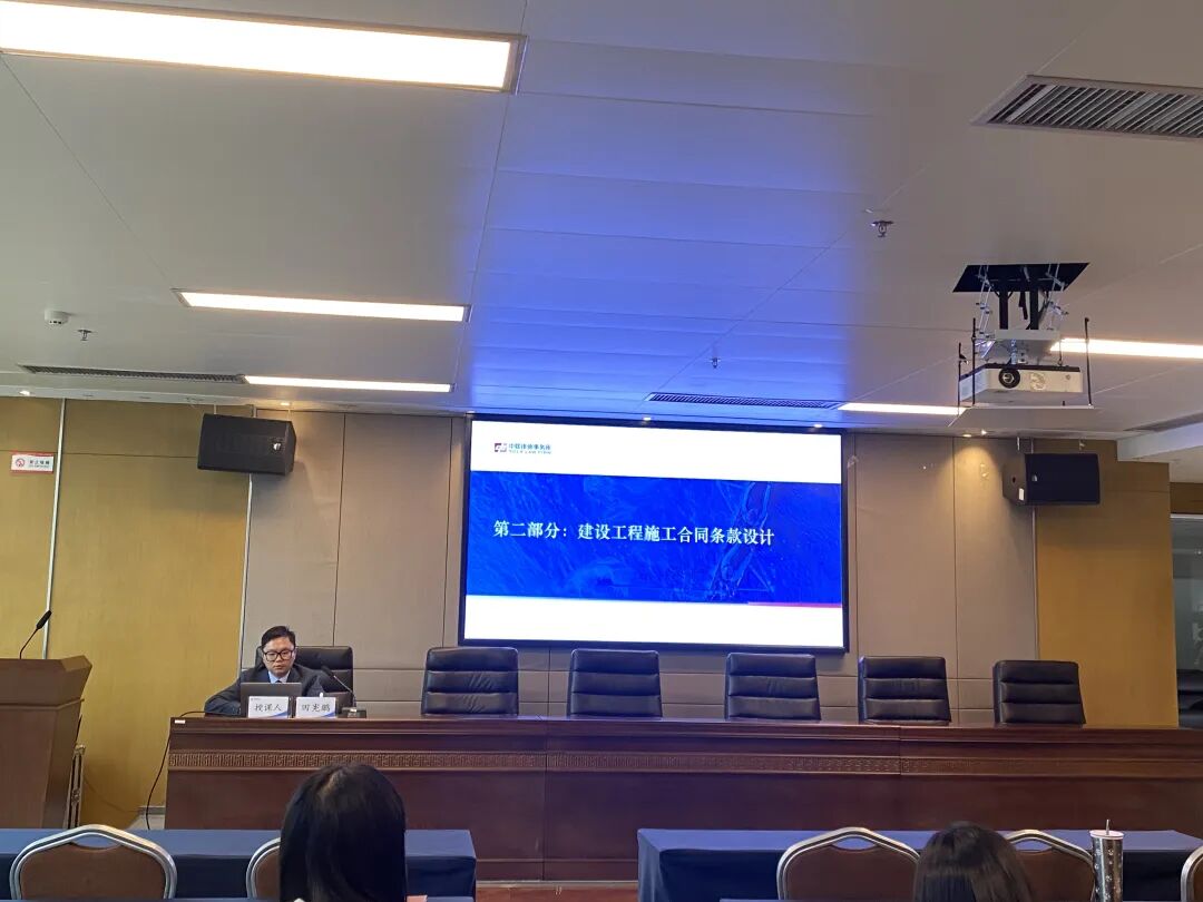 在建设工程施工合同板块,田律师系统梳理了合同无效情形、价款结算、工期认定、质量标准、竣工验收等关键环节的法律风险,并结合《建设工程施工合同(示范文本)》及司法实践,对合同条款设计提出具体建议。田宪鹏律师提出,企业应重视合同细节,明确工程范围、价款形式、违约责任等内容,尤其应注意工期顺延程序、结算报送机制等易引发争议的条款设计。