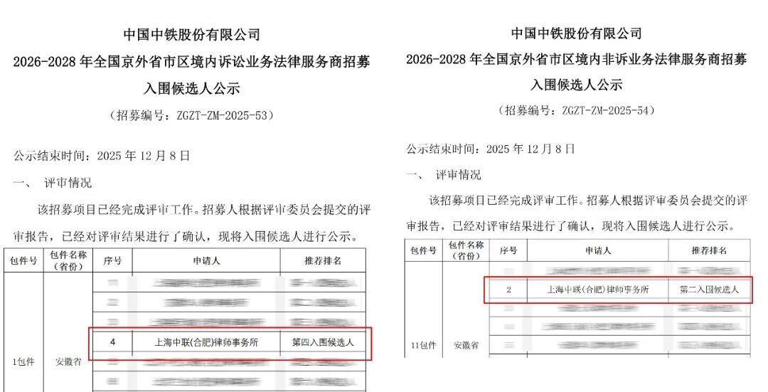 中国中铁股份有限公司隶属于国务院国资委,是集勘察设计、施工安装、工业制造、房地产开发、资源矿产、金融投资和新兴业务于一体的特大型企业集团,总部位于北京。该公司A股代码601390,H股代码00390,现有员工29万人,是我国基础设施建设领域的国家队与排头兵,连续多年入选《财富》世界五百强,2024年位列世界企业500强第35位、中国企业500强第9位。此次成功入库,既是对中联合肥办公室在大型国企诉讼和非诉讼法律服务领域中专业能力与品牌信誉的高度认可,也是中联合肥办公室长期深耕该领域、持续提升业务实力的集中体现。未来,中联合肥办公室将依托中联全国一体化服务网络与深厚的专业积淀,以标准化、精细化服务为中铁股份及更多高端客户筑牢法律保障,持续深耕专业领域,全力打造国资国企法律服务的标杆。