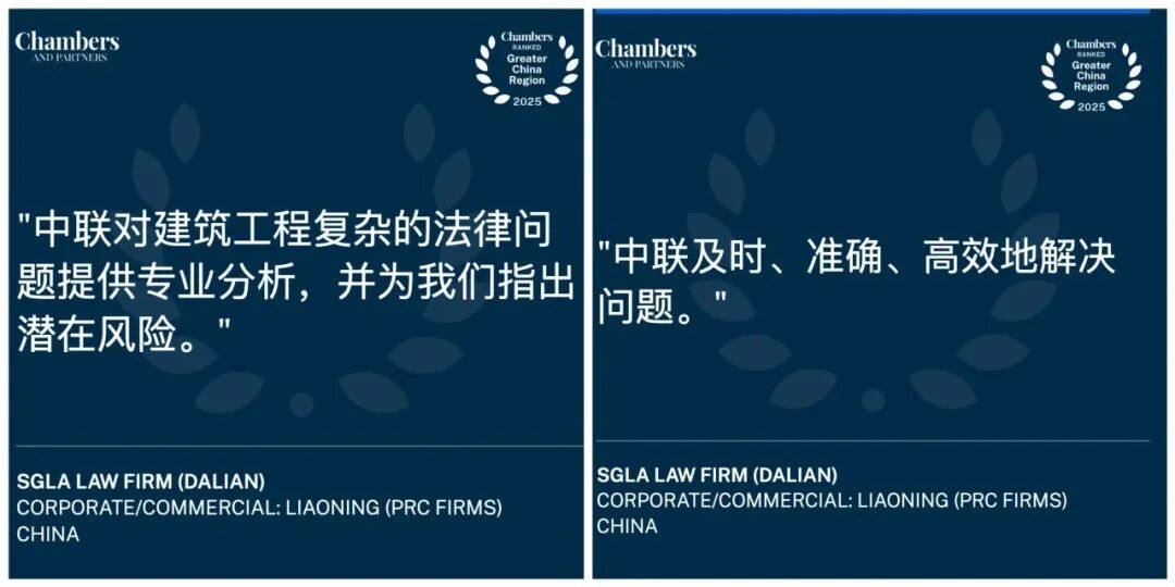 2025年1月16日,国际权威法律评级机构钱伯斯公布其《2025大中华区法律指南》,中联大连凭借卓越的表现在公司/商事领域上榜。