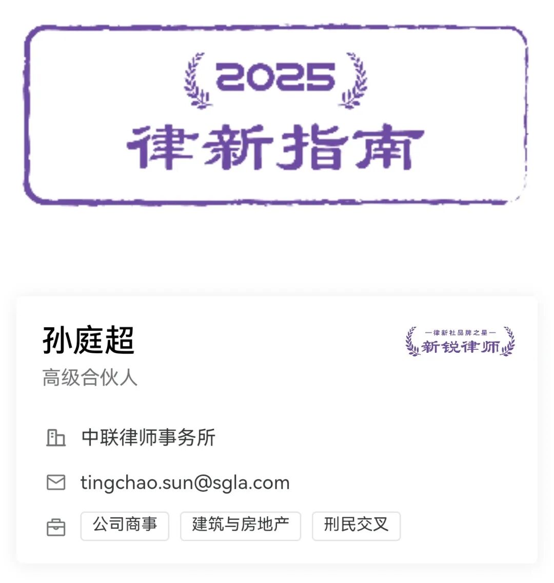 黄哲律师此次获评“匠心律师”,不仅印证了其扎实的专业技能和敬业的专业态度,也进一步体现了客户及合作伙伴对于中联律师的长期信赖。与此同时,孙庭超律师荣膺“新锐律师”,不仅彰显了其卓越的业务潜力与创新活力,也反映出中联律师的快速成长与品牌实力的持续提升。