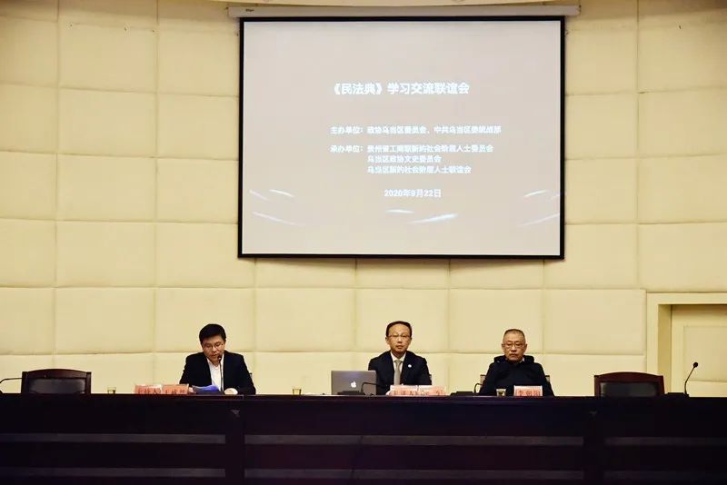 2020年9月22日下午,由政协乌当区委员会、中共乌当区委统战部主办,贵州省工商联新的社会阶层人士委员会、乌当区政协文史委员会、乌当区新的社会阶层人士联谊会共同承办的《民法典》专题学习交流活动,在乌当区政府区会展中心第三会议室举行。贵州省工商联新委会副主任、贵商总会总法律顾问、贵州省律师协会副会长、贵阳市律师协会会长、贵州君跃律师事务所主任薛军律师应邀主讲。