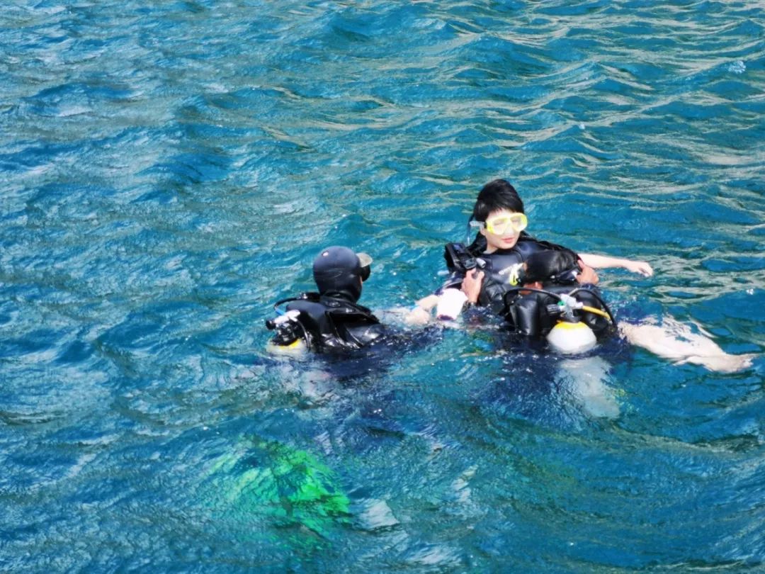 19日,快艇一路乘风破浪载着小伙伴们向蚕岛进发。蚕岛,又称汉潭岛,因海岛形状如同卧蚕而得名。小伙伴们或如鱼翔浅底,与五彩斑斓的海洋世界融为一体,或寻一把躺椅,惬意地享受日光浴。在这里,阳光正好,微风不噪。