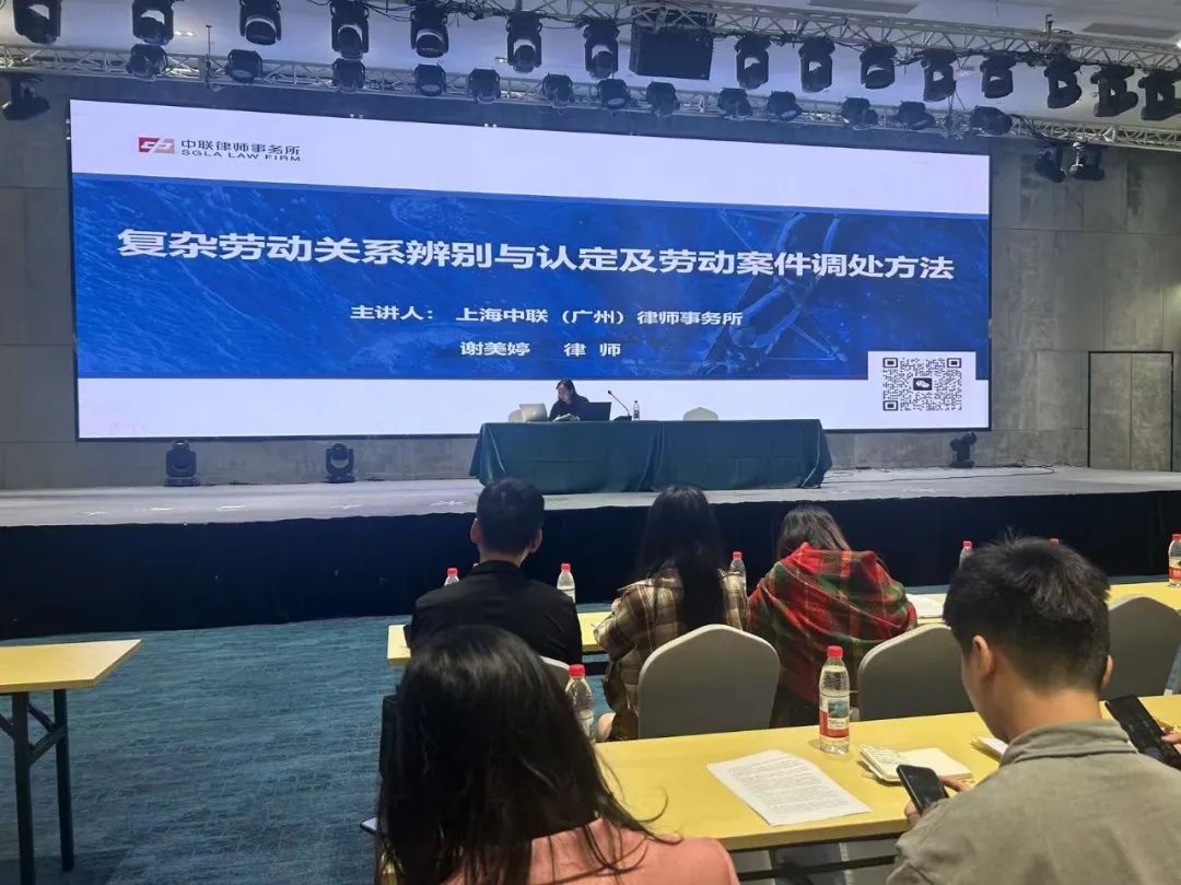 2025年8月7日,为有效提升基层劳动人事争议协商调解工作能力,织密重点行业商会劳动人事争议调解网络,加强企业劳资纠纷预防化解处置能力,促进和谐劳动关系构建,广州市花都区人力资源和社会保障局举办2025年花都区劳动人事争议调解员考证培训班暨花都区劳动争议基层调解组织集中授牌仪式。本所劳动与社会保障业务部部长谢美婷律师作为特邀主讲嘉宾,为现场接近200多名行业商(协)会代表、企业代表、镇(街)基层调解组织代表开展《复杂劳动关系辨别与认定及劳动案件调处方法》专题培训讲座。